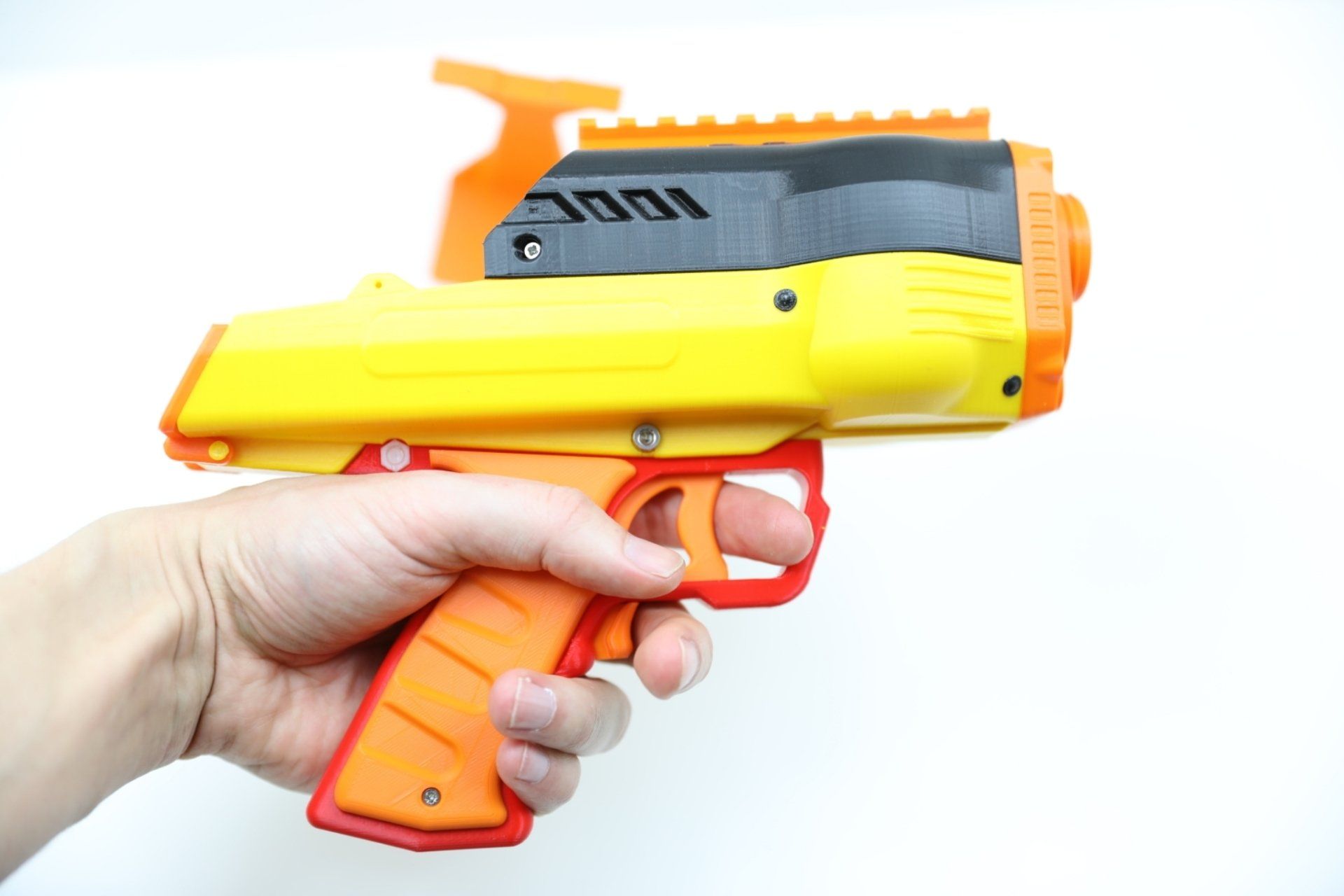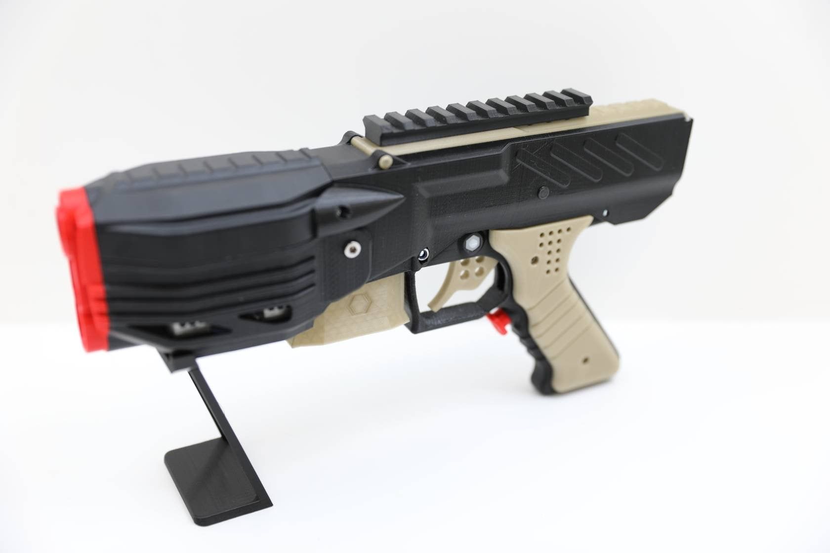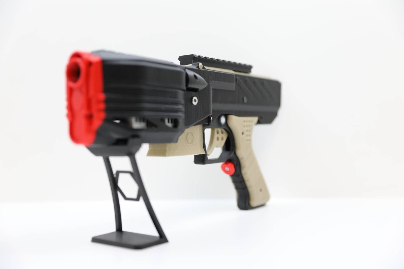 This is how it started. The NG-1 was the first blaster developed by my3dbase. It is designed as a primary featuring large 380 motors. In its basic configuration it is set up to run on a 2s battery. The main body is printed in high quality PLA. Motors are thermally decoupled with ABS washers.