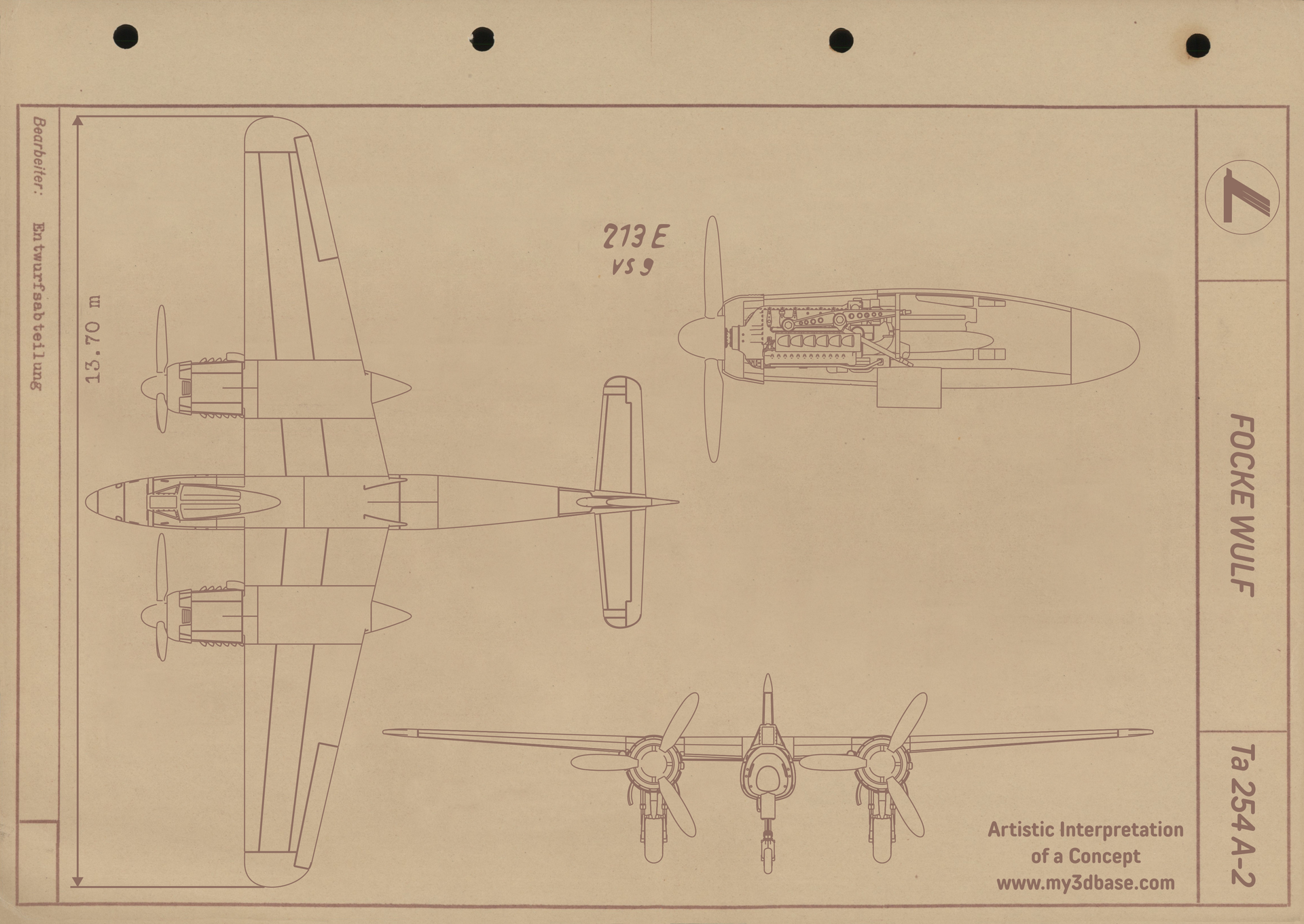 - The Ta 254 A-0, A-1, A-2, and A-3 were equipped with two Junkers Jumo 213 E engines, each to be operated with a VS 9 propeller.