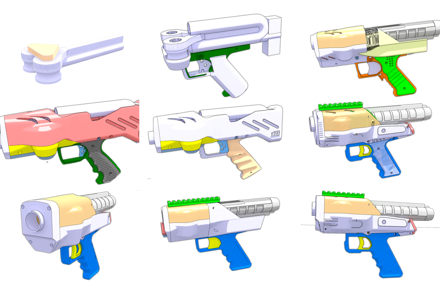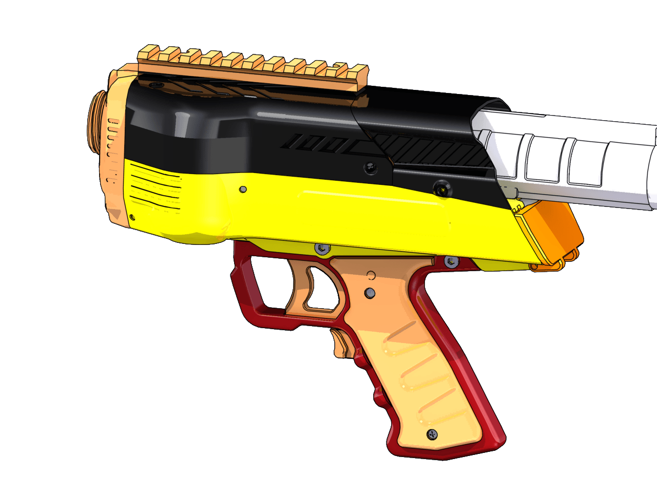 For this blaster we had to iterate ourselves through 17 different versions. Most deisgn solutions implemented on half- or full length darts where not applikable due to the different type of ammunition. Lets quickly dive into the main design drivers of this blaster.